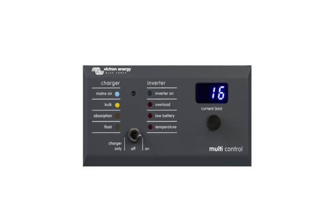 Le tableau de contrôle numérique Digital Multi Control est utilisé pour consulter et ajuster les courants d'entrée CA, et pour allumer et éteindre à distance les Multi ou les Quattro. Il est conçu pour s'intégrer élégamment au tableau de contrôle de votre système installé sur votre bateau, dans votre véhicule ou votre maison.